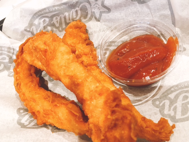 「コンボ」とは、ポテト+ドリンクのセットということで迷いましたが、お肉のほうが好きなので、ハンバーガー単品と 「チキンテンダー(3-PIECE)」に決めました。