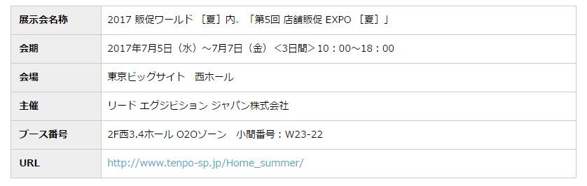 出展するのは、販促・マーケティングに関わる商材すべてを網羅した商談専門展「販促ワールド」内で開催される「店舗販促 EXPO 夏」です٩( ‘ω’ )و