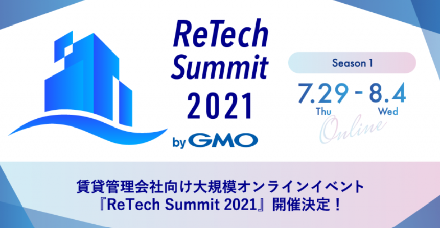 GMO TECH株式会社の連結会社で、不動産テック事業を推進するGMO ReTech株式会社(代表取締役社長:鈴木 明人 以下、GMO ReTech)は、賃貸管理会社様向け大規模オンラインイベント『ReTech Summit 2021 byGMO(リテックサミット)』Season1の動画を本日まで公開しております!(※動画を閲覧するためには、特設サイトから無料のお申込みが必要です)
