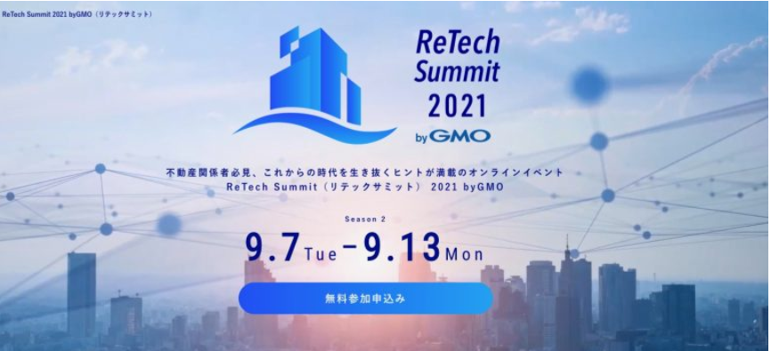 GMO TECH株式会社の連結会社で、不動産テック事業を推進するGMO ReTech株式会社(代表取締役社長:鈴木 明人 以下、GMO ReTech)は、賃貸管理会社向け大規模オンラインイベント『ReTech Summit 2021 byGMO』Season2の動画を本日公開いたしました。