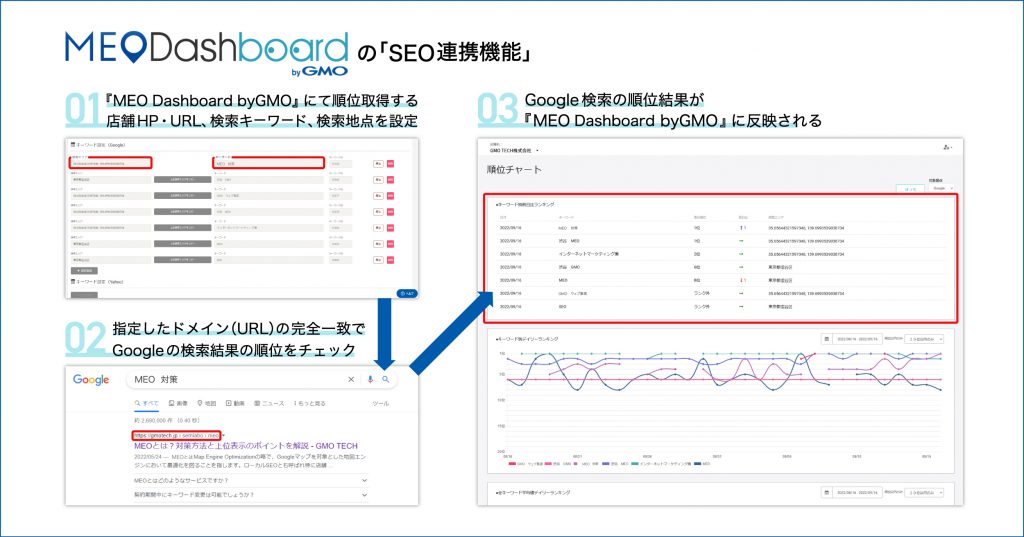 『MEO Dashboard byGMO』に 店舗ホームページと指定検索エリア及び指定キーワードの順位が 表示できる「SEO連携機能」を追加!