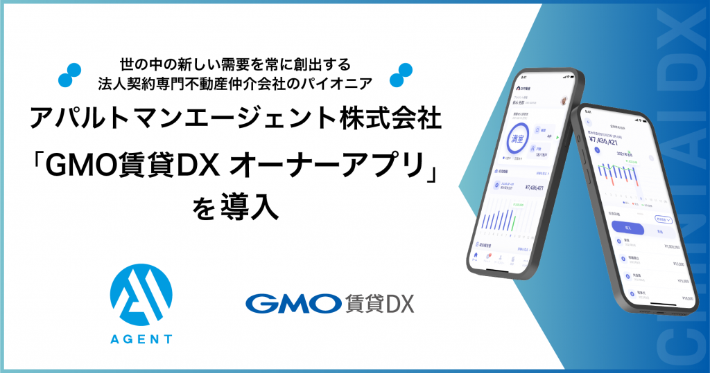 弊社の連結会社で、不動産賃貸領域におけるDX(デジタルトランスフォーメーション)を支援するGMO ReTech株式会社(代表取締役社長:鈴木 明人 以下、GMO ReTech)が提供する賃貸管理会社向けDXプラットフォーム「GMO賃貸DXオーナーアプリ」を、世の中の新しい需要を常に創出する、法人契約専門不動産仲介会社のパイオニア、アパルトマンエージェント株式会社様に導入いただいたことをお知らせいたします!