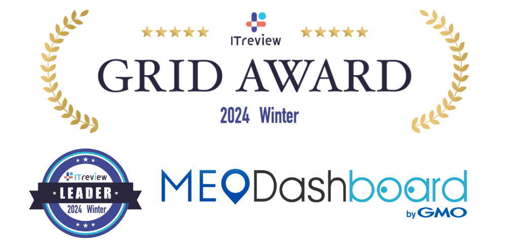 弊社が提供するMEO(※1)総合管理ツール『MEO Dashboard byGMO』は、製品レビュー(口コミ)をもとに選定され、顧客満足度の高い製品を表彰する「ITreview Grid Award 2024 Witer」(主催:アイティクラウド株式会社 URL:https://www.itreview.jp/award/2024_winter.html)において、以下2部門で最高位となる『Leader』賞を受賞しました。