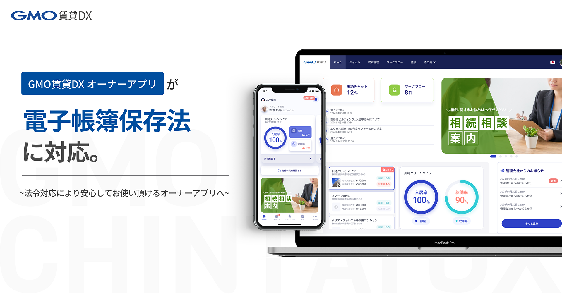 【GMO ReTech】「GMO賃貸DX オーナーアプリ」が電子帳簿保存法に対応〜法令対応により安心してお使いいただけるオーナーアプリへ〜