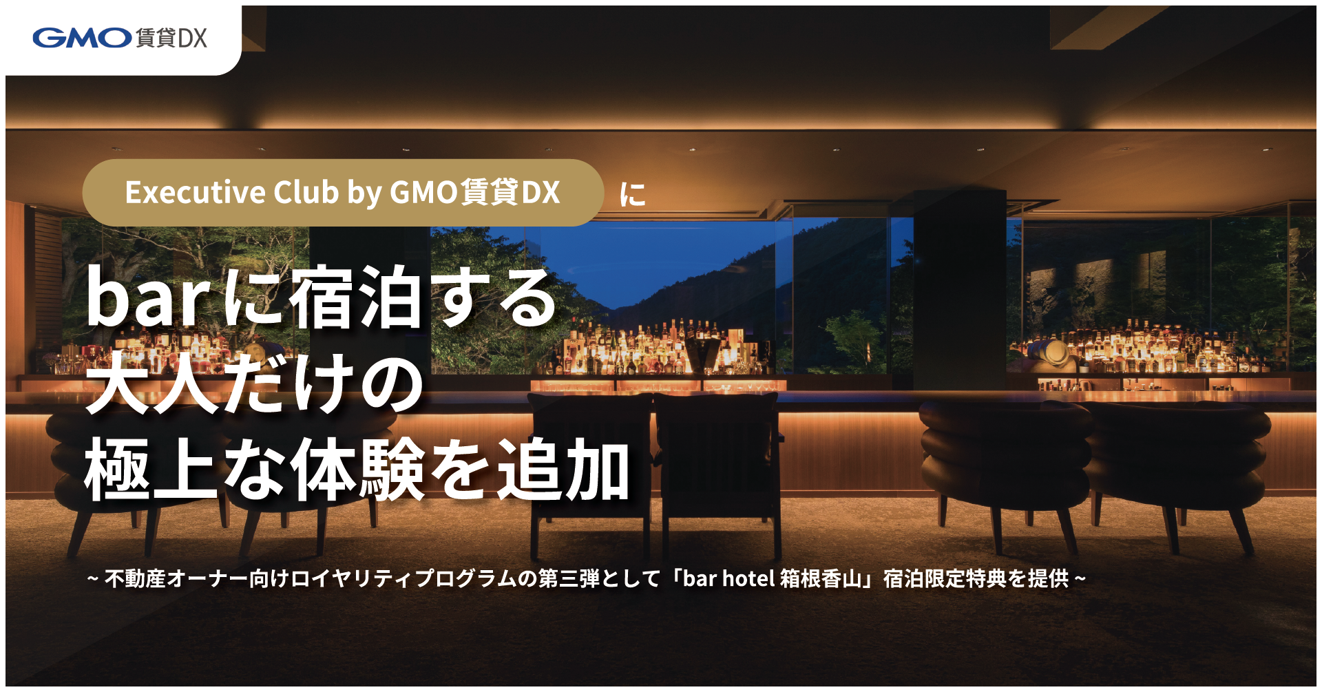 これにより、「Executive Club by GMO賃貸DX」をご利用いただいているオーナーは、「barに泊まる」をコンセプトにした隠れ家ホテル「bar hotel 箱根香山」での当プログラム限定の宿泊特典を受けることができます。