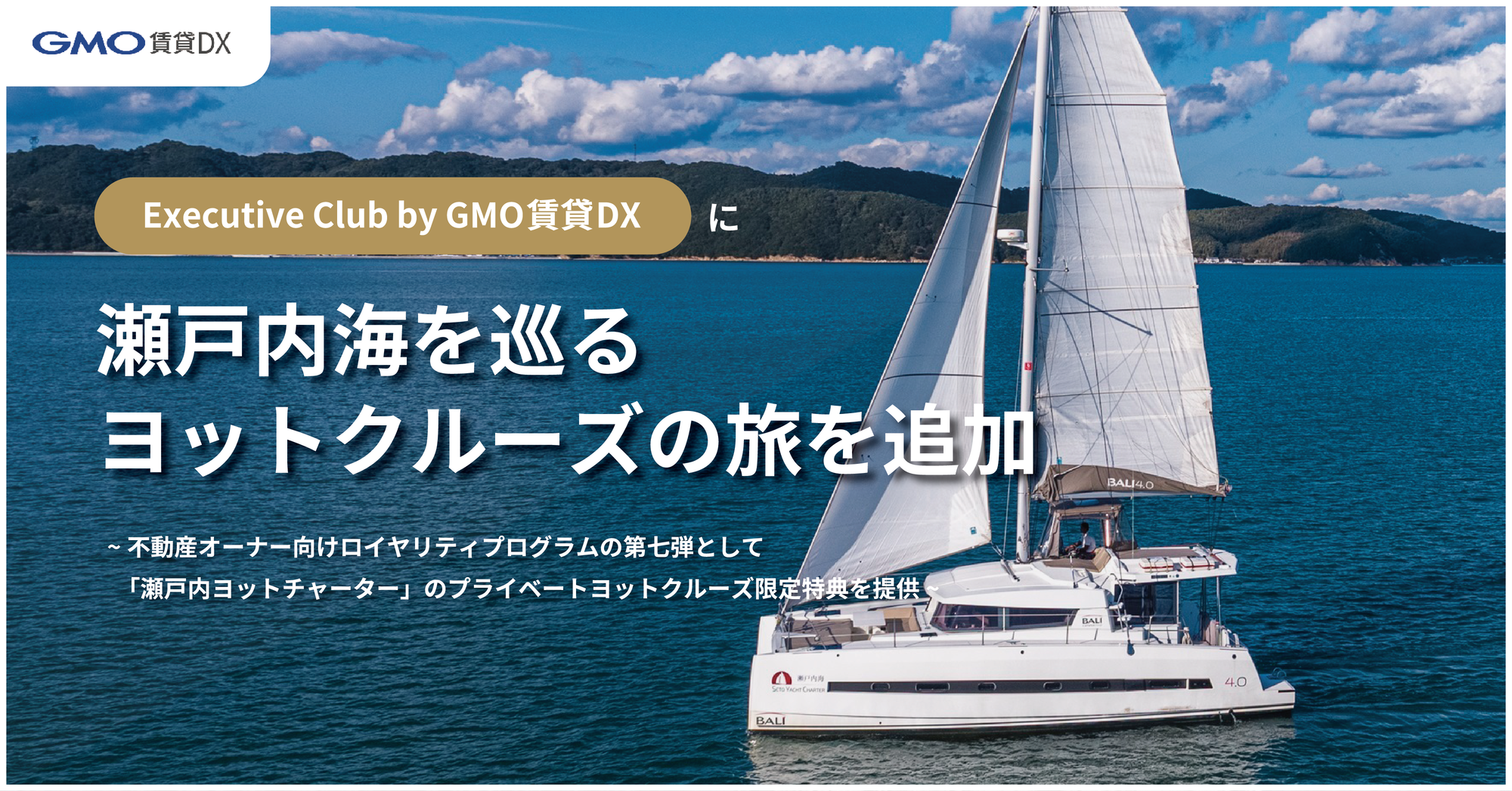 これにより、「Executive Club by GMO 賃貸DX」をご利用いただいているオーナーは、「瀬戸内ヨットチャーター」にて、当プログラム限定の特典をご利用いただけます。