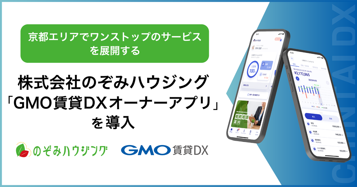 弊社の連結会社で、不動産賃貸領域におけるDX(デジタルトランスフォーメーション)を支援するGMO ReTech株式会社(代表取締役社長:鈴木 明人)は、賃貸管理会社向けプラットフォーム『GMO賃貸DX オーナーアプリ』を、株式会社のぞみハウジングに導入いただいたことをお知らせいたします。