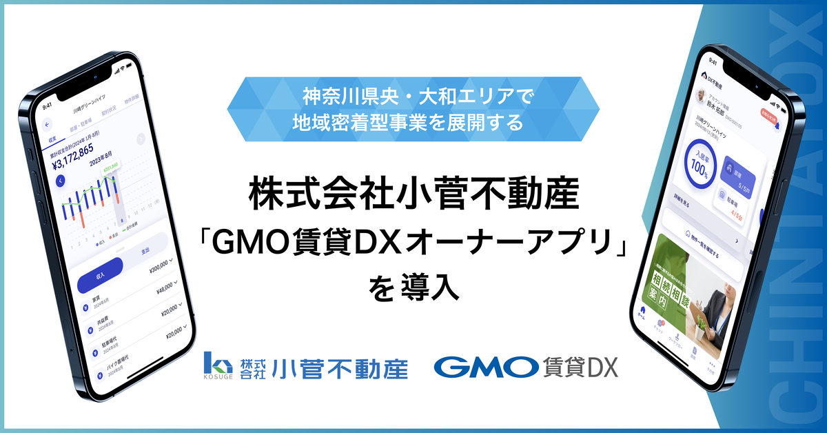 弊社の連結会社で、不動産賃貸領域におけるDX(デジタルトランスフォーメーション)を支援するGMO ReTech株式会社(代表取締役社長:鈴木 明人)は、賃貸管理会社向けプラットフォーム『GMO賃貸DX オーナーアプリ』を、株式会社小菅不動産に導入いただいたことをお知らせいたします。