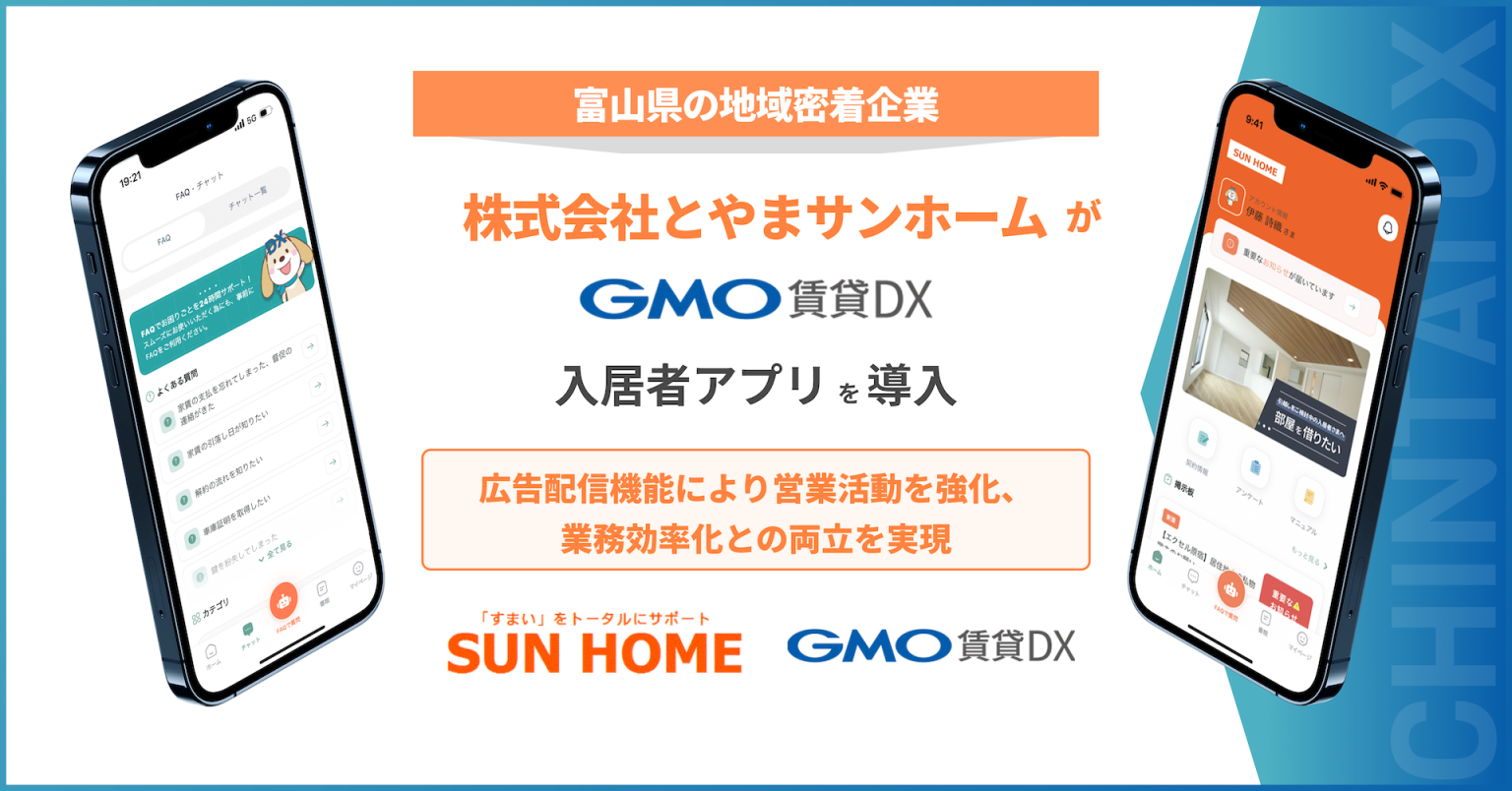 【ReTech】富山県の地域密着企業・株式会社とやまサンホームが『GMO賃貸DX 入居者アプリ』を導入!