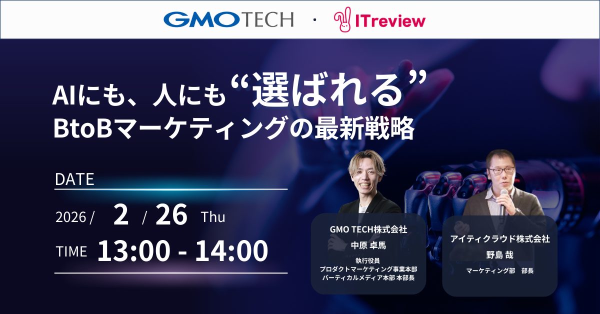 GMOインターネットグループのGMO TECH株式会社(代表取締役社長:鈴木 亮一)は、2026年2月26日(火)13:00より、アイティクラウド株式会社との共催ウェビナー「生成AIと検索エンジン 両方に評価される最新検索情報最適化戦略」を開催します。