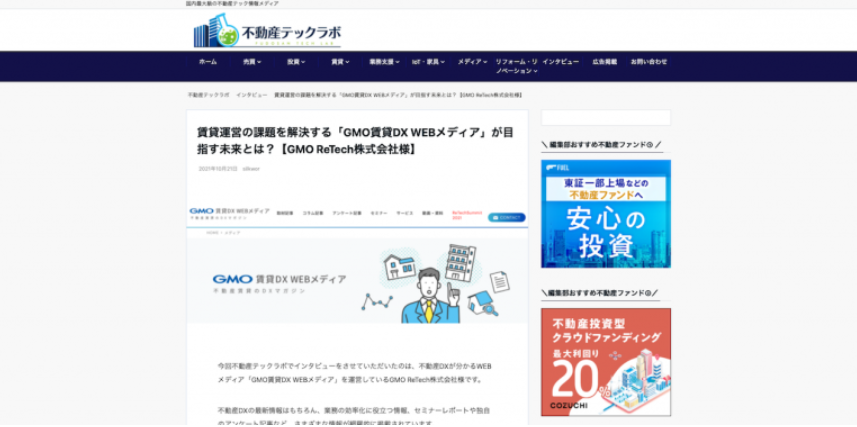 【GMO ReTech】不動産テックラボに「GMO賃貸DX WEBメディア」のインタビュー記事が公開されました!