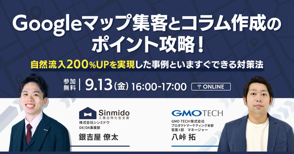 シンミドウとGMO TECHが共催し、Googleマップ集客ウェビナーを開催します!