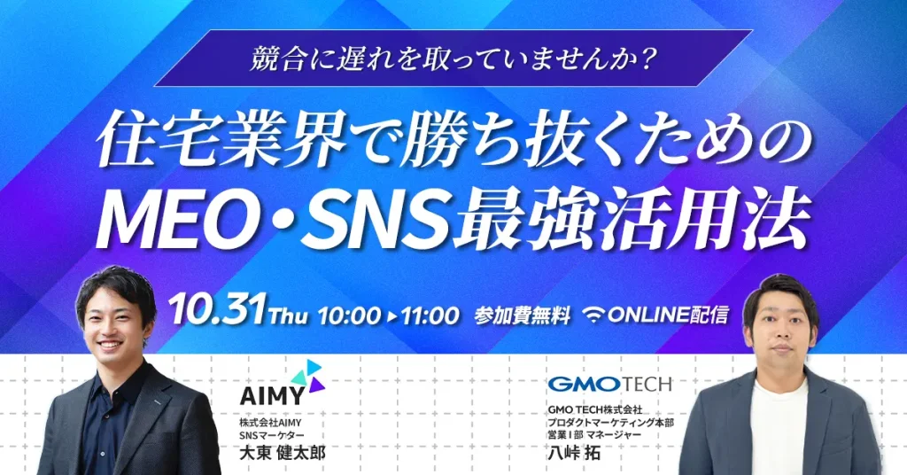AIMYとGMO TECHが共済し、住宅業界向けMEO・SNS活用ウェビナーを開催します!