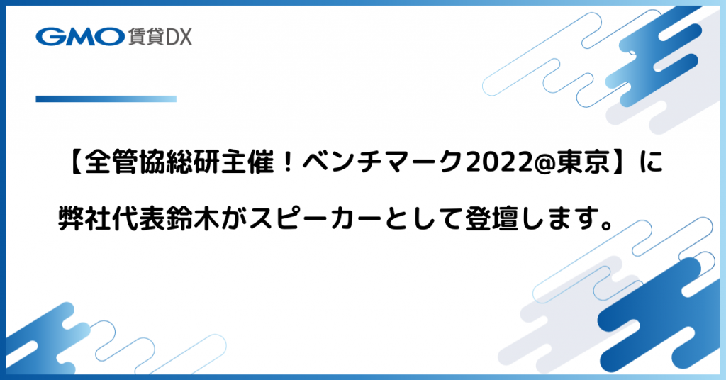 【GMO ReTech】全管協総研主催の『ベンチマークイベント2022@東京』に代表取締役社長の鈴木が登壇します!