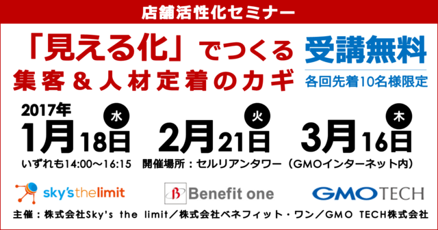 2017年 3社合同セミナー開催決定!『見える化』でつくる集客&人材定着のカギ