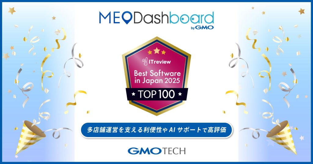 『MEO Dashboard byGMO』が、「ITreview Best Software in Japan 2025」のTOP100に選出されました!