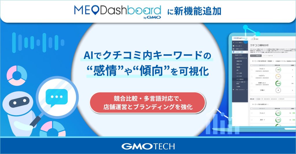 『MEO Dashboard byGMO』に、AIでクチコミ内キーワードの“感情”や“傾向”を可視化する新機能を追加しました!