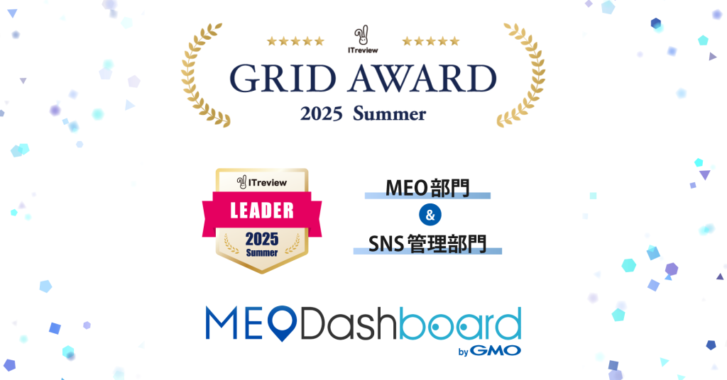 『MEO Dashboard byGMO』、「ITreview Grid Award 2025 Summer」のMEO部門・SNS管理部門にて「Leader」賞受賞!