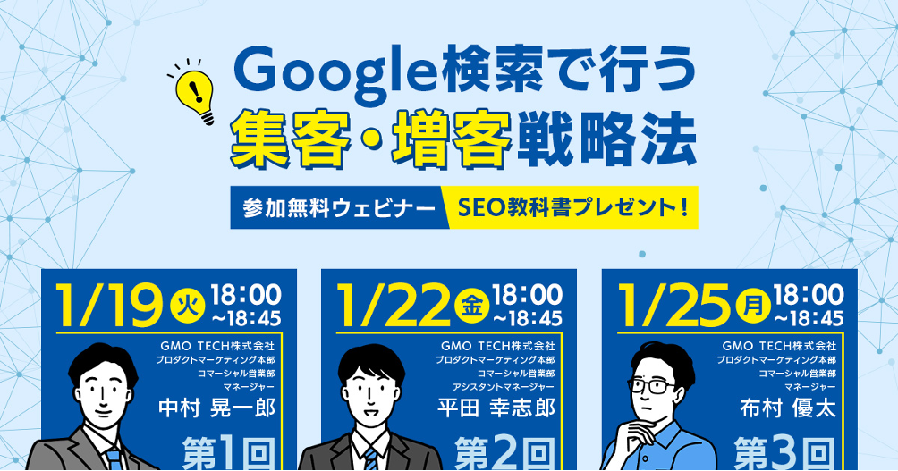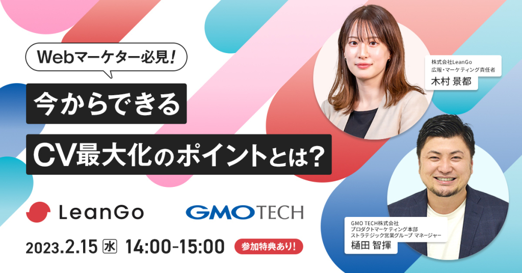 【無料ウェビナーのご案内】GMO TECH×株式会社LeanGoが『CVR改善でCV最大化!サイト改善と最新SEO情報のマーケティングセミナー』を共催します!