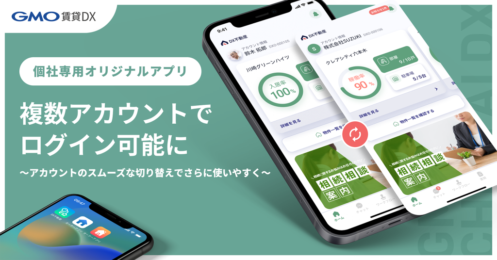 【ReTech】「GMO賃貸DX」個社専用オリジナルアプリが複数アカウントでログイン可能に
