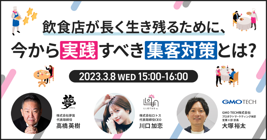 【無料ウェビナーのご案内】GMO TECH・株式会社夢笛・株式会社ロトスが「飲食店が長く生き残るために今から実践すべき集客対策」についてのウェビナーを共催します!