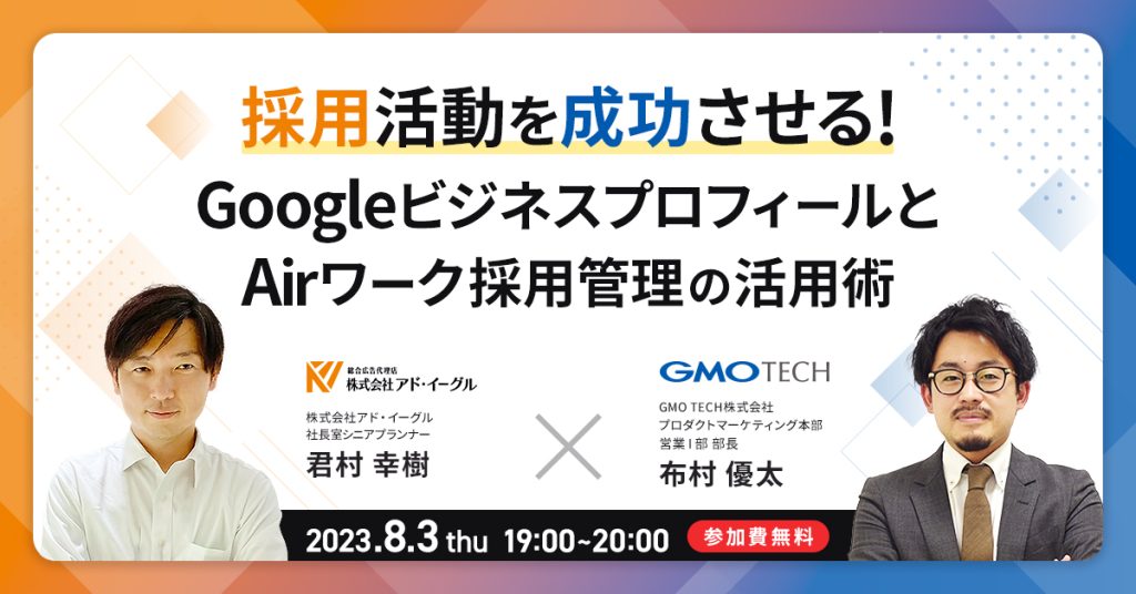 【求職者の信頼を得るために 知っておくべきGoogleマップとAirワーク採用管理の活用術 】株式会社アド・イーグルとウェビナーを共催します!