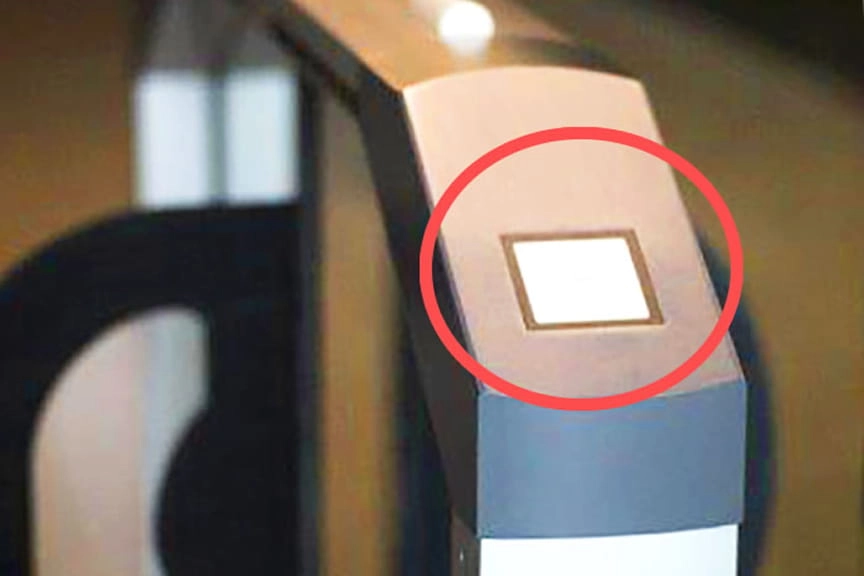 セキュリティーゲートにゲストカード返却口がございます。そちらにカードを挿入してください。