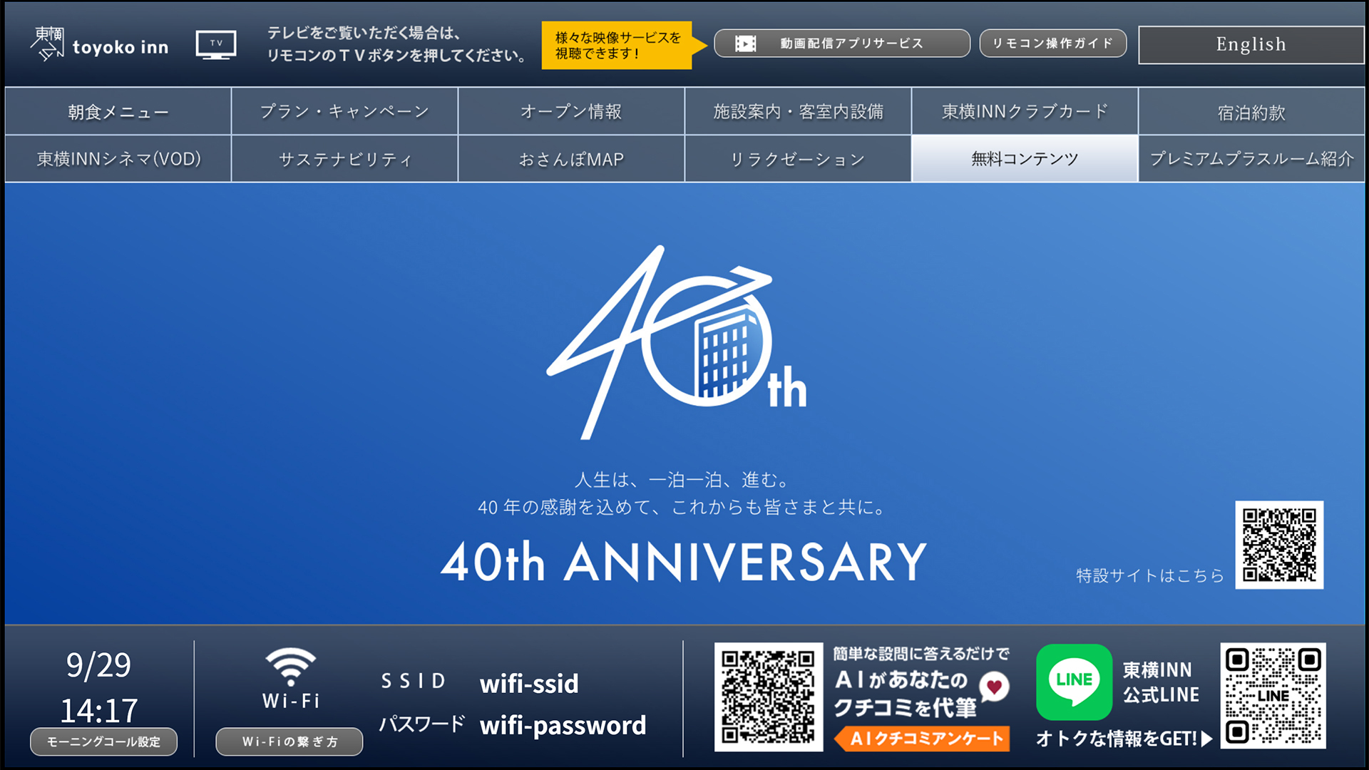 GMO 인터넷 그룹에서 인터넷상의 집객 서비스를 전개하는 GMO TECH 주식회사(대표 이사 사장: 스즈키 료이치 이하, GMO TECH)는, 2025년 10월 1일(수)부터, 주식회사 토요코인(대표 집행역 사장: 구로다 마이코) 이하, 토요코인)이 운영하는 비즈니스 호텔 「토요코인」의 전 객실 모니터에, 입소문 투고·앙케이트 회답이 가능한 독자 툴을 탑재했습니다.
