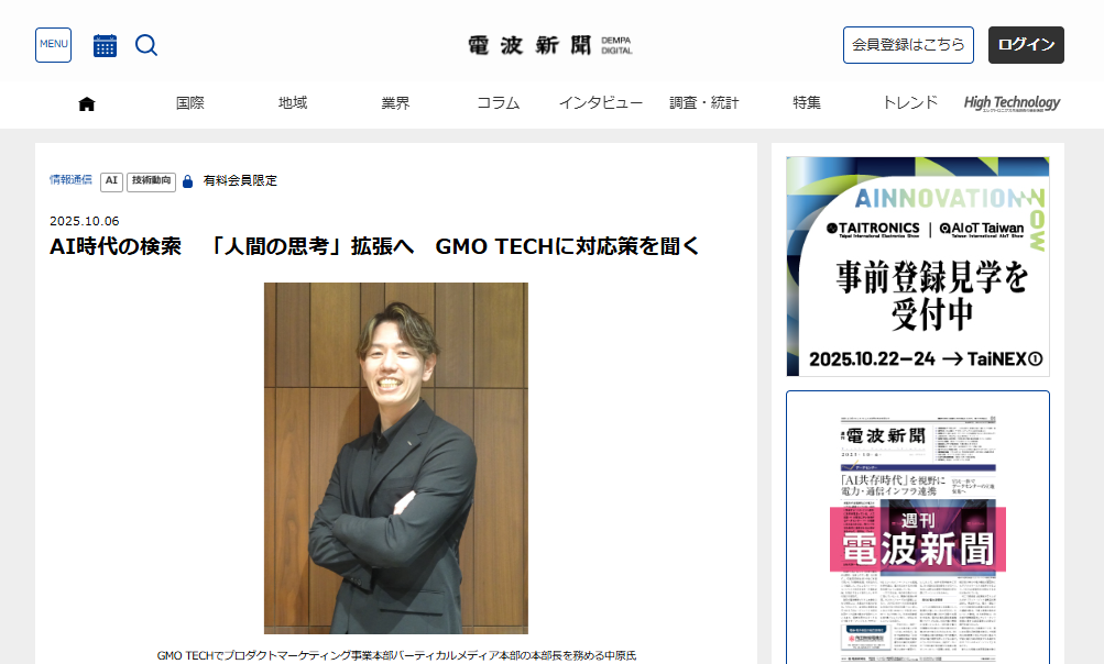전파신문사가 운영하는 「전파신문 디지털」에, GMO TECH 주식회사 집행 임원 나카하라의 취재 기사가 게재되었습니다.