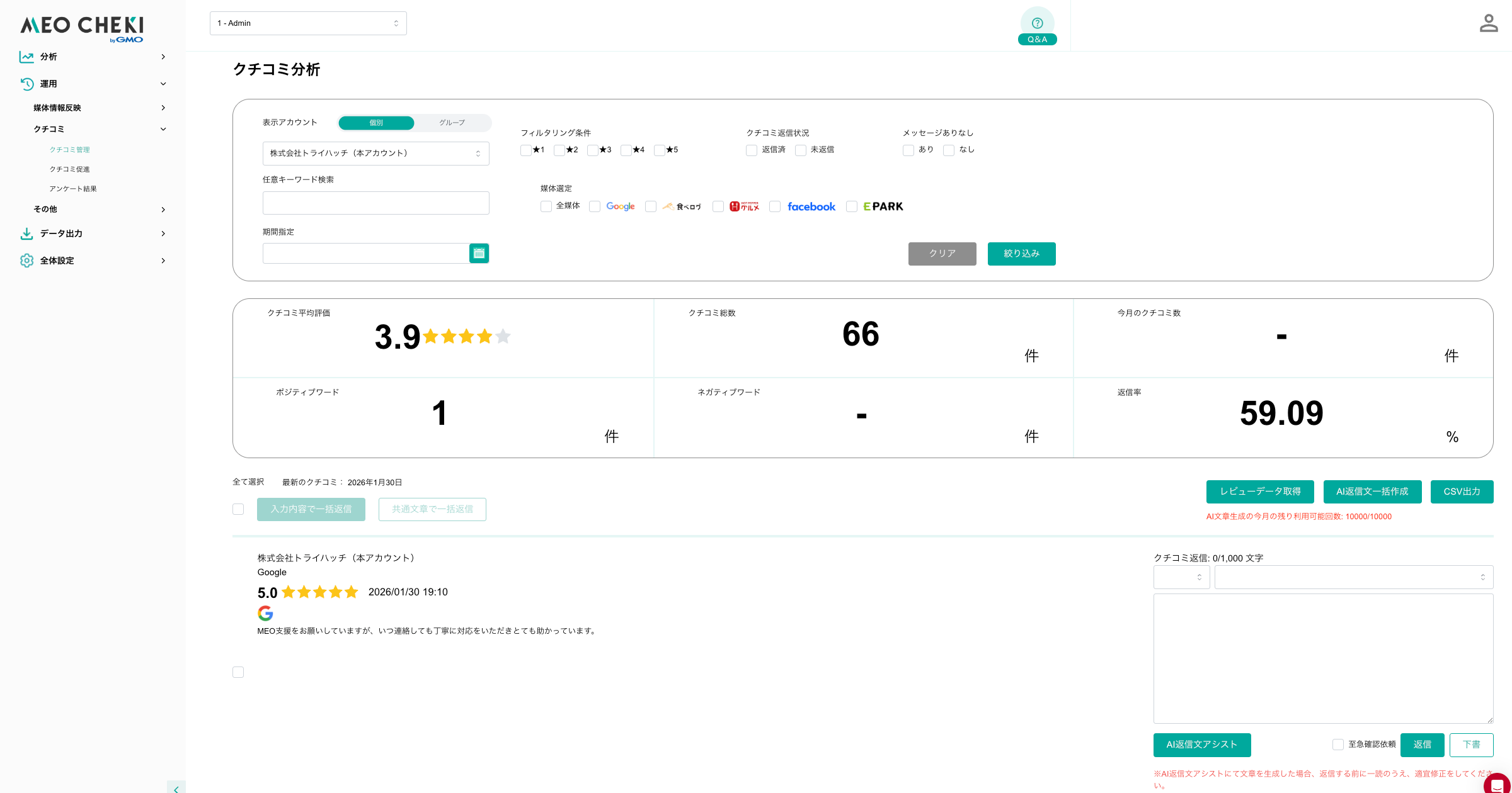 GMOインターネットグループのGMOトライハッチ株式会社(代表取締役社長:大澤 健人)は、2026年3月9日(月)より、MEO(※1)対策ツール「MEO CHEKI byGMO」および「MEO CHEKI for複数店舗 byGMO」の管理画面を全面リニューアルしました。