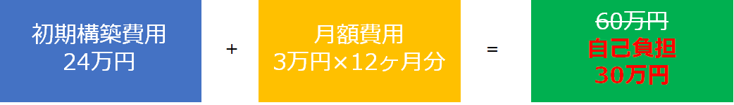 「IT導入補助金」をご利用の場合、「GMOアップカプセル」の「シルバープラン」を、通常初年度60万円(税別)のところ、初年度30万円(税別)でご利用いただけます。