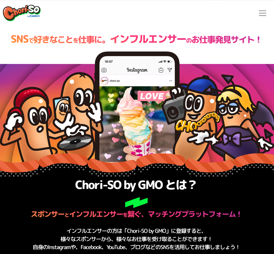 インフルエンサーと企業をつなぐ、ビジネスマッチングプラットフォーム 「Chori-SO by GMO」を提供開始 〜SNSで好きなことを仕事にしよう〜