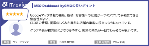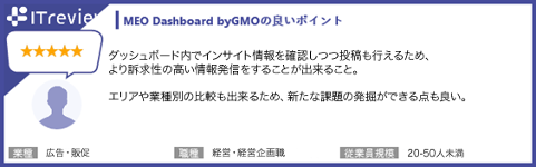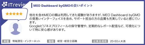 ■「MEO Dashboard byGMO」に関するレビュー: https://www.itreview.jp/products/meo-dashboard/reviews