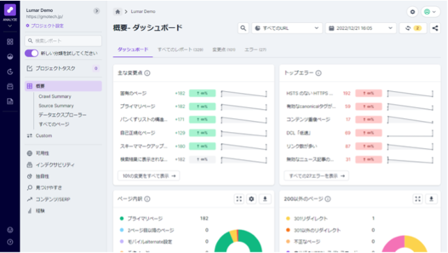 『Lumar』は、SEO内部対策に特化したツールで、高レベルなクローラーが内部対策の問題点を自動で可視化するテクニカルSEOツールです。