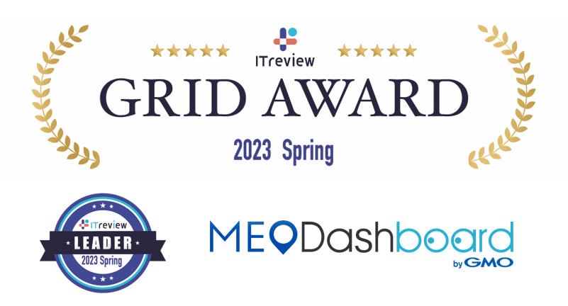 『MEO Dashboard byGMO』は「ITreview Grid Award 2023 Spring」のマーケティング全37部門の中で、MEOとSNS管理の2部門で最高位『Leader』賞を受賞いたしました。