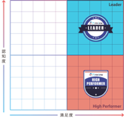 「ITreview Grid Award」でユーザー評価の高い2領域を表彰し、満足度が高い領域のプロダクトには『High Performer』、さらに、認知度、満足度両方の領域で高い評価を得たプロダクトには『Leader』 バッジを発行されます。