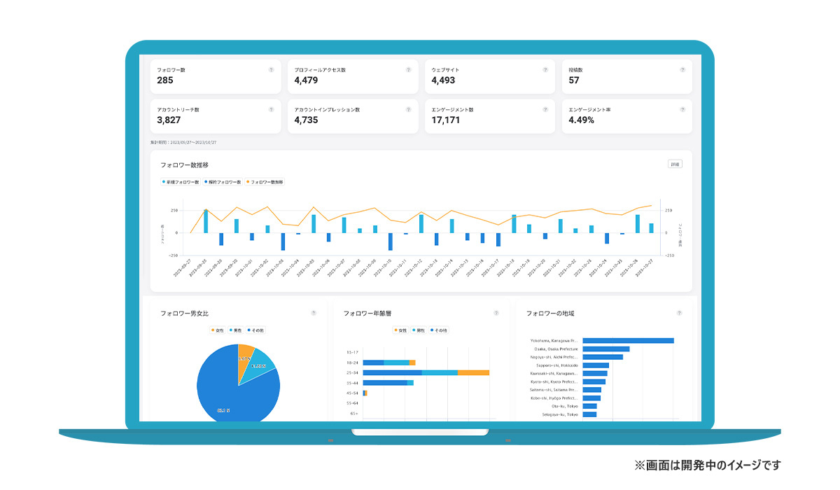 『Instagram分析機能』を活用することで、フォロワーの属性に基づいたターゲティングが可能となり、フォロワー数の増加が期待できます。また、投稿に対する反応を分析することで改善点を見つけ、ターゲットの属性や興味に合致した投稿を行うことができます。