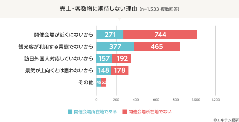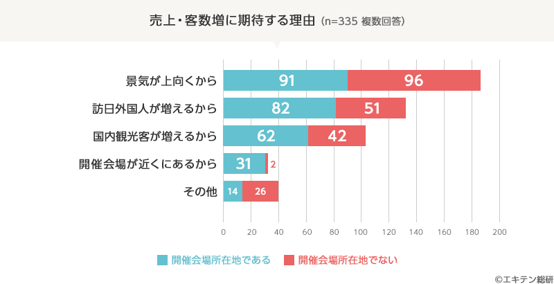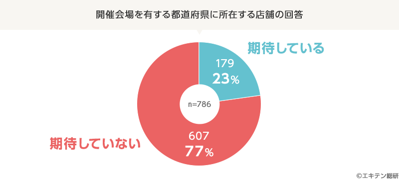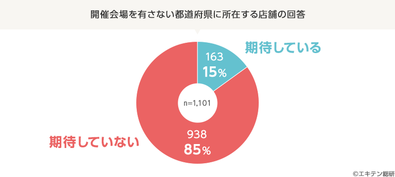 一方、開催会場のある都道府県に所在する店舗はもちろん、開催会場のない都道府県に所在する店舗でも、「売上・客数増に期待している」と回答している店舗も一定数いることが、以下のアンケート結果から見えてきます。