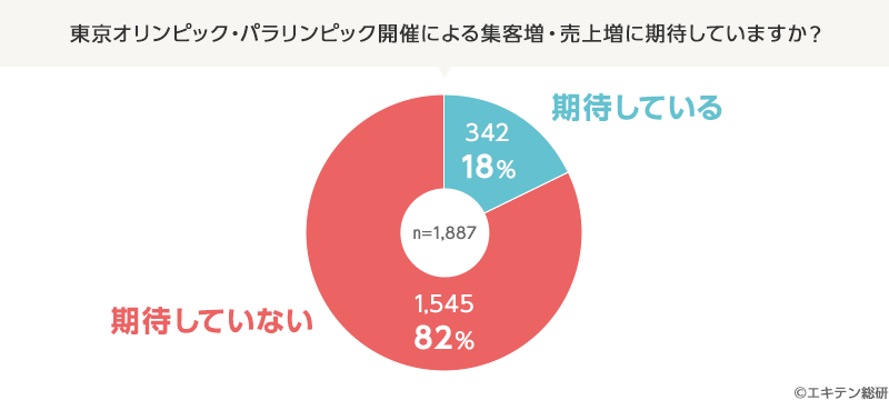 全国の中小事業者においては、東京オリンピック・パラリンピック開催による売上・客数増に8割以上が期待していないという結果となりました。