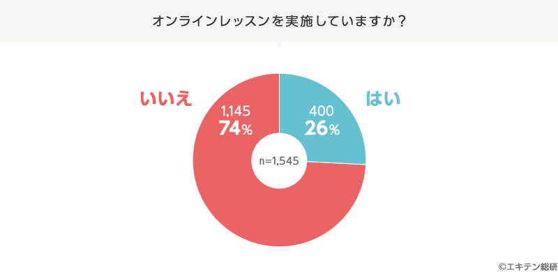株式会社デザインワン・ジャパン(代表取締役社長:高畠靖雄、東証一部 6048)が運営する中小事業者の調査・研究開発部門「エキテン総研」はこのほど、全国の店舗関係者に対して「オンラインレッスンに関する調査」を実施しました。その結果をご報告いたします。