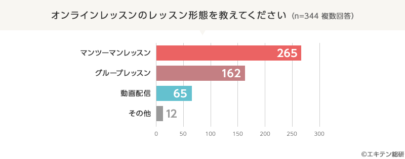 オンラインレッスンの形態は、半数以上の店舗が「マンツーマンレッスン」と回答。