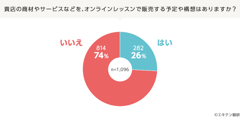 オンラインレッスンを実施していない店舗に、実施の構想の有無を尋ねてみると、76%の店舗がいいえ、と回答。