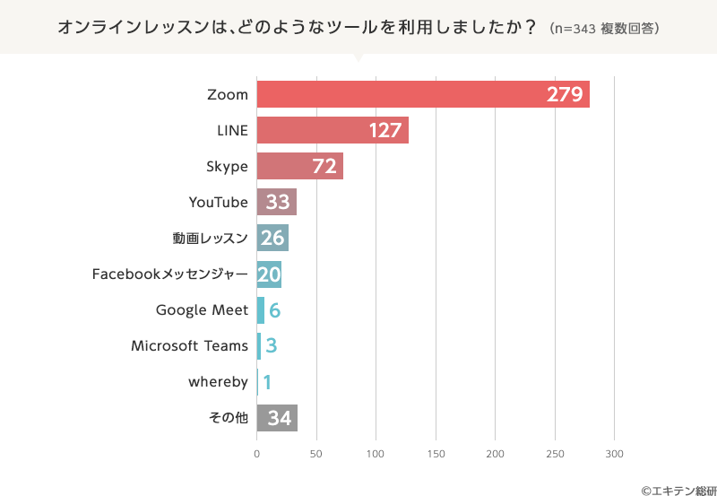 レッスンの配信に利用したツールは、Zoomと回答した店舗が圧倒的に多くなりました。
