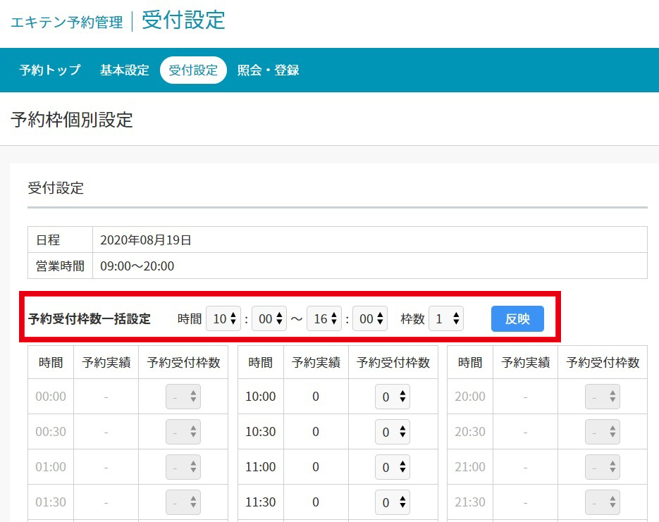■予約受付枠数の一括変更とは