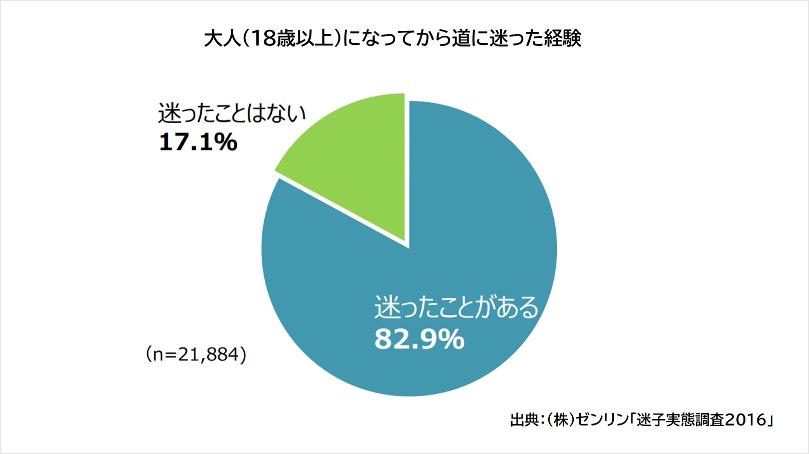 地図情報の調査・制作・販売を行う株式会社ゼンリンがおこなった調査では、「大人になってから道に迷ったことがありますか」という問いに対し、実に82.9%の人が「道に迷ったことがある」と回答しています。