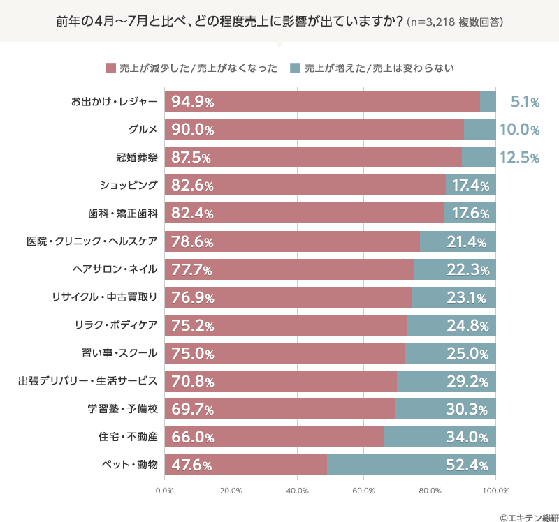 中小事業者へコロナ禍における経営実態調査を実施(エキテン総研)-多くの店舗が苦境の中、売上が伸びた業態も。コロナ流行から半年で中小事業者に起きた変化とは-