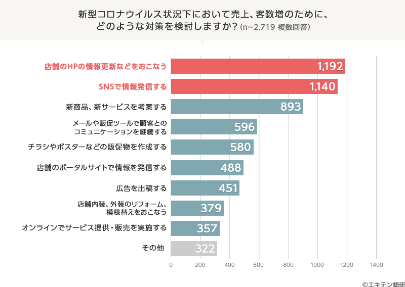 【新型コロナウィルス状況下において売上、客数増のために、どのような対策を検討しますか】