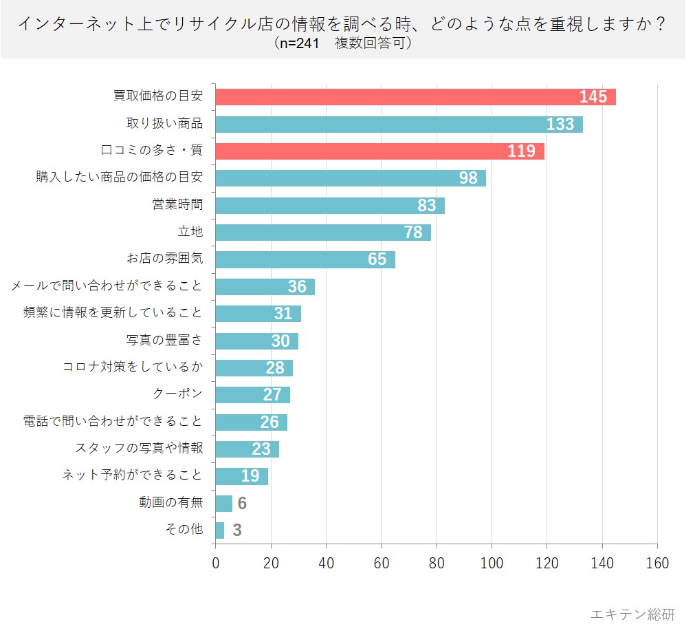 【インターネット上でリサイクル店の情報を調べる時、どのような点を重視しますか】