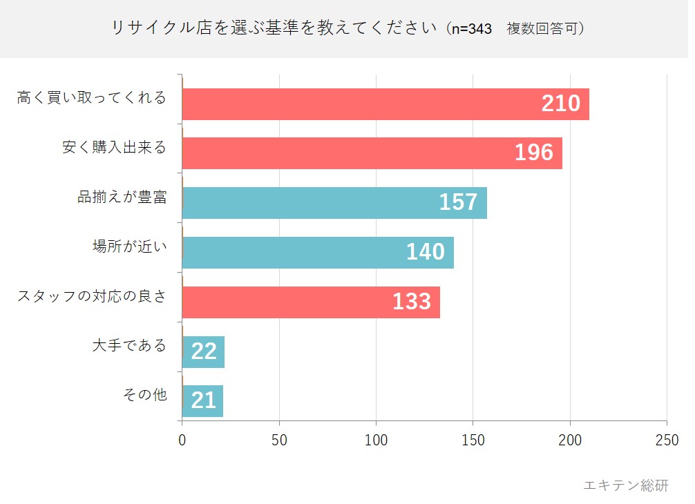 そこで、エキテン総研では、リサイクル店舗を利用するユーザーがどのようにお店を選ぶのか、選ぶ際の重視点などを調査しました。