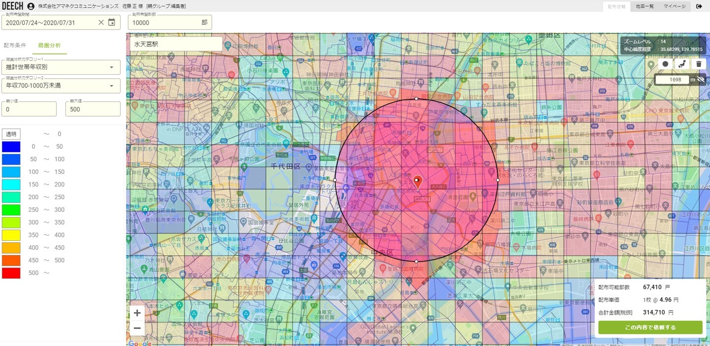株式会社DEECHは、Google マップから商圏エリアを設定するだけでポスティングの見積もりから発注、商圏分析、反響分析、競合分析までワンストップで行えるエリアマーケティングシステム「DEECH」の開発・販売しています。今回の機能アップデートでは、不動産業界や教育業界で強く要望のあった小・中学校の所在表示と学区表示を追加しました。*小・中学校の所在と学区がワンクリックで表示可能